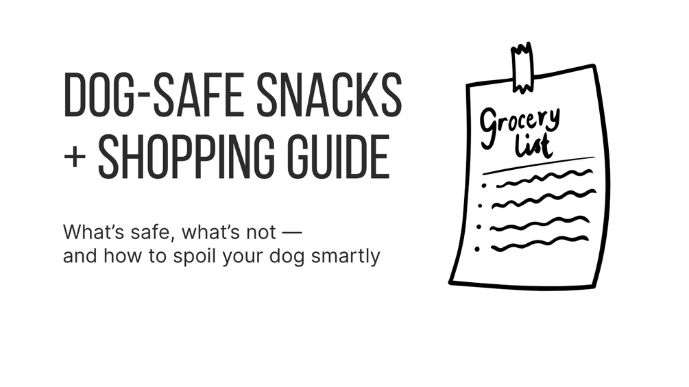A one-page, color-coded guide to help you choose safe snacks for your dog — with “YES,” “MODERATION,” and “NO” lists for fruits, veggies, and everyday foods. 🦴